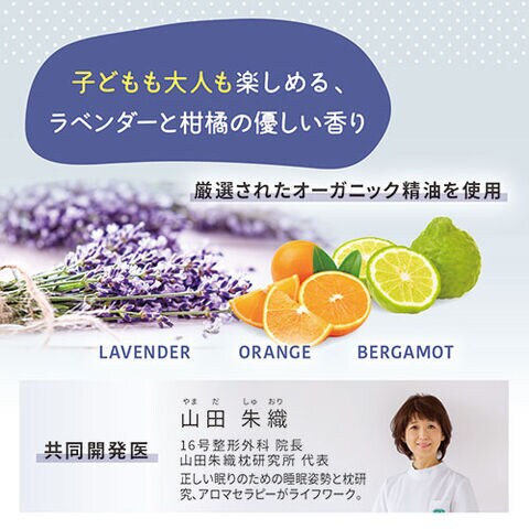 お子様はもちろん、家族みんなの睡眠環境をサポートする、ラベンダーと柑橘のやさしい香り。