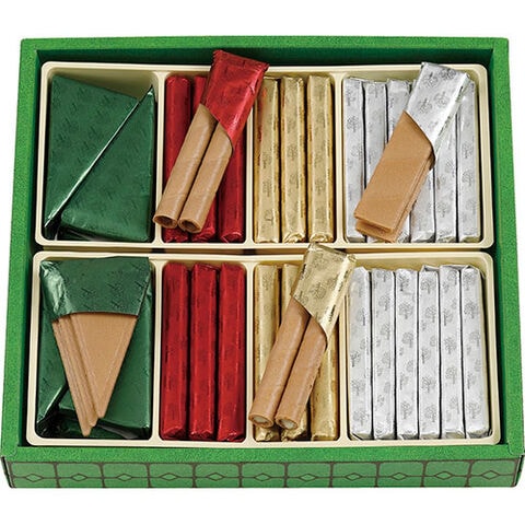 セット内容 : 三角(3枚入)×8、短冊(2枚入)×12、丸型(ミルクチョコ・ホワイトチョコ)(各2本入)×各6