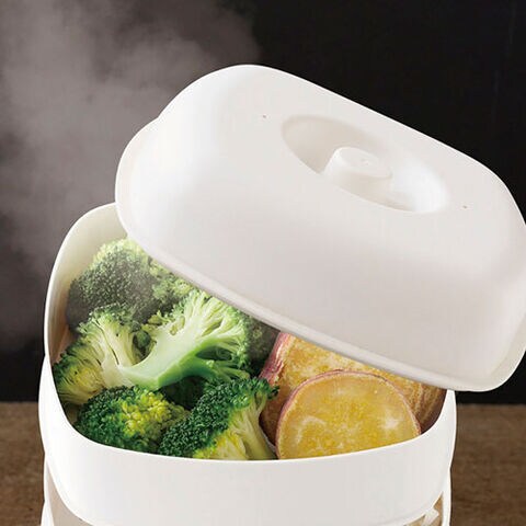 2つの食材を同時調理できる!ワンプレートがあっという間に底皿からのスチームでくまなく循環加熱!