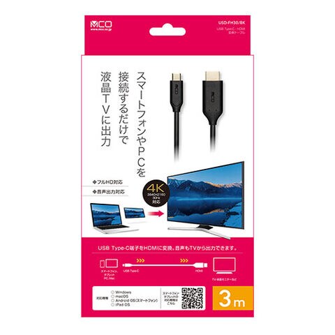 MCO Type-C to HDMIケーブル 3m ブラック USD-FH30/BK