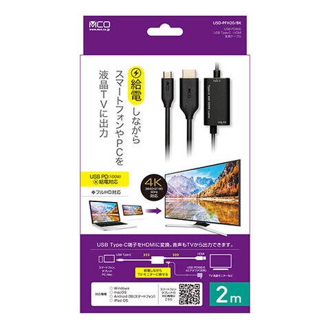 MCO PD対応Type-C to HDMIケーブル 2m USD-PFH20/BK