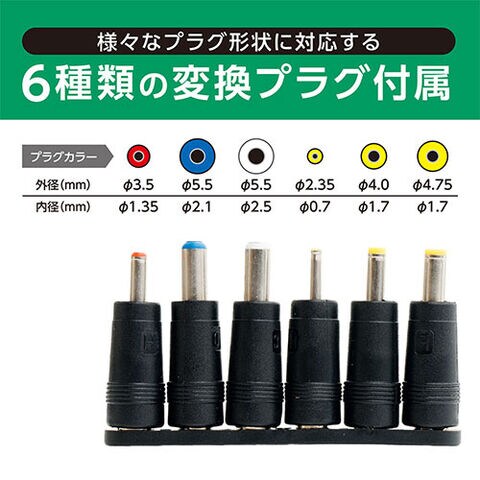 ● 様々な電気機器のプラグ形状に対応できる6種類の変換プラグを付属