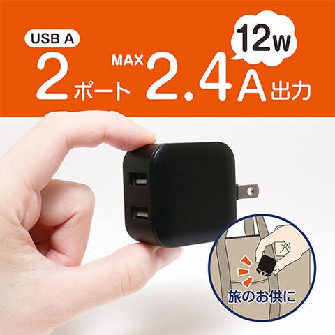 海外でも使える100~240V対応 2ポート出力合計2.4A