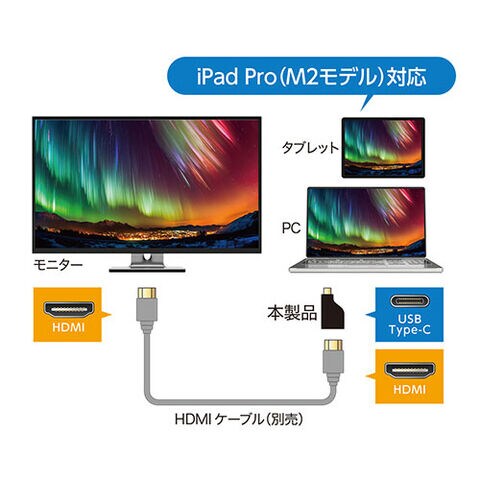 ●対応機種:映像出力に対応したUSB Type-C端子搭載のノートPC、MacBookシリーズ、タブレット、スマートフォン、iPadシリーズ