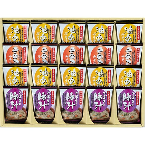 セット内容 : お味噌汁(油あげ)×10 、お味噌汁(きのこ・豚汁)×各5