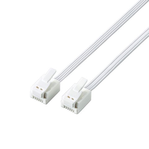 モジュラーコンセントと家庭用電話機・ビジネスホン・FAX・モデムなどを接続できる6極4芯タイプのツメ折れ防止モジュラーケーブル。