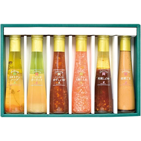 セット内容 : イタリアンハーブ・フレンチガーリック・ノンオイルゆずしょうゆ・ノンオイル大根と人参・和風しょうゆ・焙煎ごま(各122ml)×各1