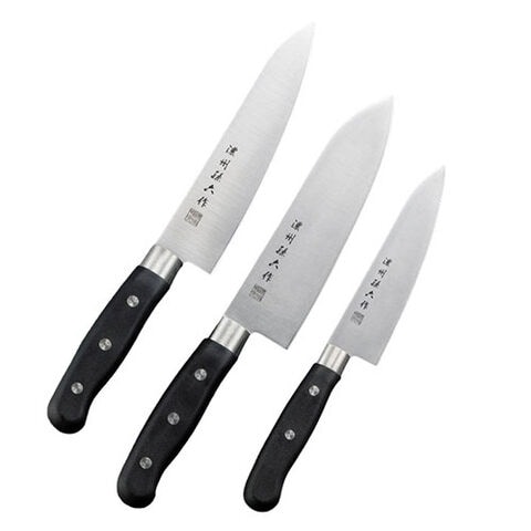 セット内容 : 三徳包丁(刃渡17cm)・ペティナイフ(刃渡12cm)・牛刀包丁(刃渡17cm)×各1
