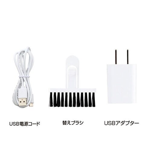 コンパクトなのにパワフル吸引。お子様の学習机や食後のテーブルのお掃除などに便利です。伸びるブラシで掃きながらお掃除。また、ダストボックスとブラシが水洗いできる清潔設計。充電約1.5~2時間で約1時間使用可能。USB電源コード・USBアダプター・替えブラシ×各1付。