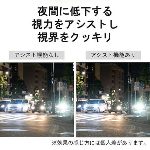 夜間の視力は通常よりも低下すると言われています。特許取得済の視力補正付アシスト機能でクリアな視界を実現! ※特許取得済 特許第6413062号