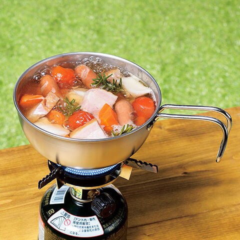 ・本体・ハンドルも丈夫なステンレス製で食洗機対応。ガス火はもちろん焚火・炭火にも対応します。