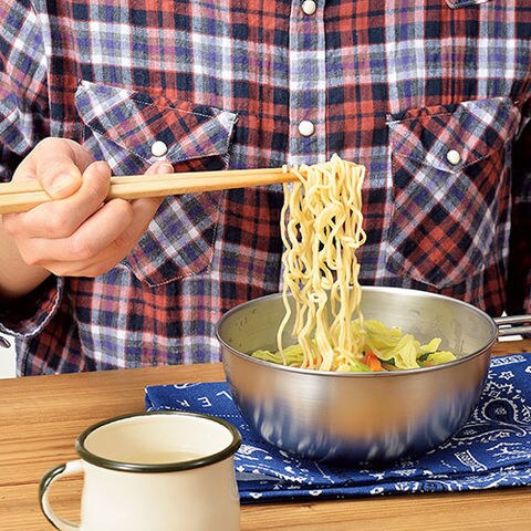 ・袋めんがそのまま入るサイズでどんぶり代わりにそのまま食べられる。
