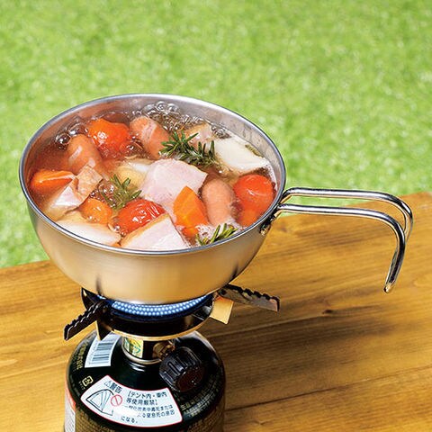 ・本体・ハンドルも丈夫なステンレス製で食洗機対応。ガス火はもちろん焚火・炭火にも対応します。