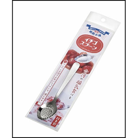 皿の中央が平らで、つぶつぶ模様のイチゴスプーン。つぶつぶが滑り止めになっていて、潰しやすい。介護や離乳食にも。