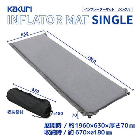 角利産業 KAKURI インフレーターマット 7cm厚 半自動的に空気が入る・アウトドアから災害時に シングル 196×63×7cm KKR86098