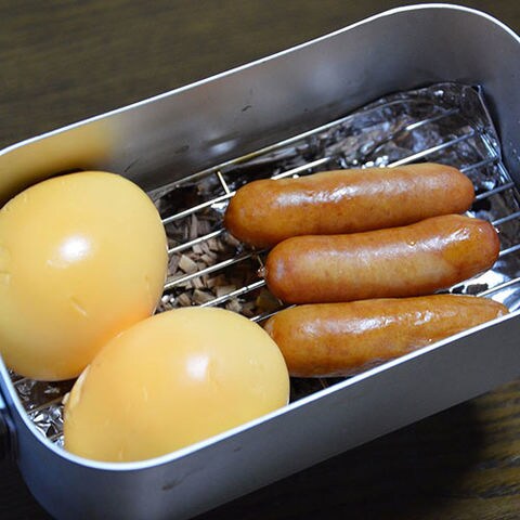 アルミ製で軽量、ハンドルを折りたたんでコンパクトに収納できます。炊飯用メモリ付。2合までのごはんが炊けます。網付の為、燻製もできます。収納袋付。