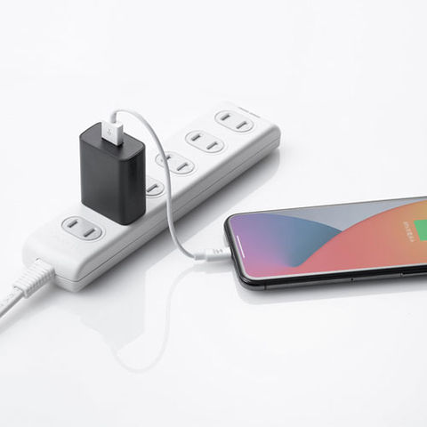 家庭用コンセントからUSB電源出力に変換できる最大1Aの出力に対応したAC充電器。