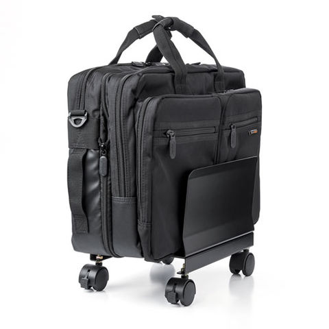 キャスター付きでサッと引き出せる。幅調整で厚めの鞄にも対応。