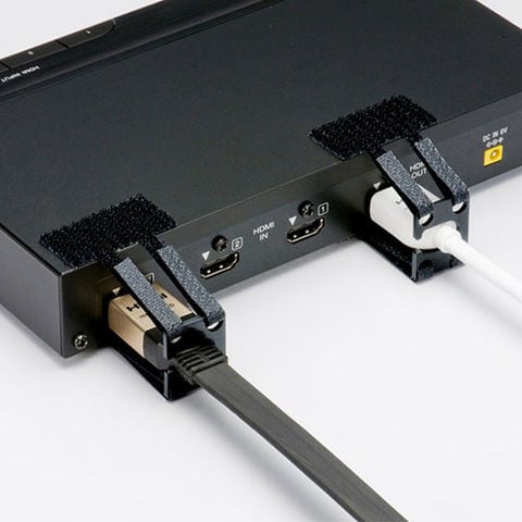 ●HDMIホールドロック(R)は、プラグを押さえるマジックフッカー(樹脂)と機器側へ取り付ける、固定するための粘着付き面ファスナーの組み合わせで構成されています。