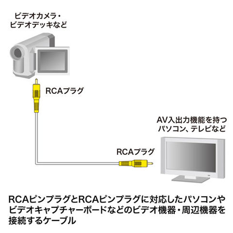 RCAピンプラグとRCAピンプラグに対応したパソコンやビデオキャプチャーボードなどのビデオ機器・周辺機器を接続するケーブル。