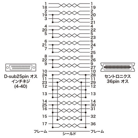 D-sub25pinオス インチネジ(4-40)-セントロニクス36pinオス