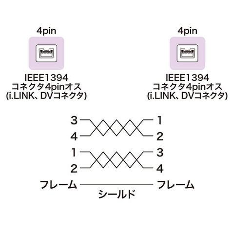 ●IEEE1394規格準拠(4pin)のインターフェースを持つパソコン、周辺機器、デジタルAV機器を接続するケーブルです。(各機器間最長ケーブル長は4.5m)