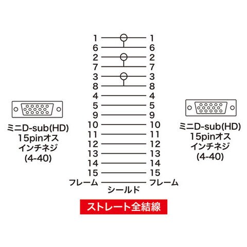 ●ミニD-sub15pinのディスプレイ端子を持つパソコンとディスプレイ・プロジェクタなどを、またそれらを切替器・分配器と接続するケーブルです。