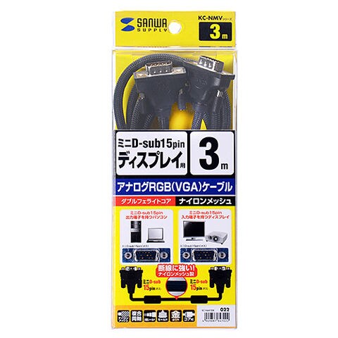 サンワサプライ ナイロンメッシュディスプレイケーブル KC-NMV30K