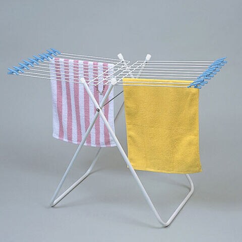 洗濯物をしっかり挟むクリップが付いた、コンパクトな20枚掛け室内物干し!
