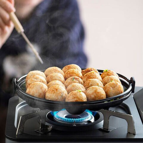 デリッシュ・ライフ 鉄鋳物たこ焼き器19穴・ツル付 ガス火専用