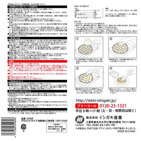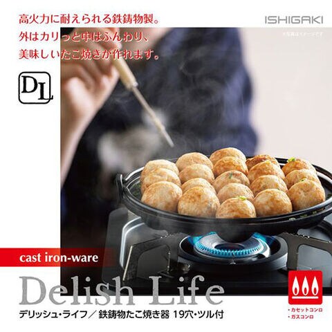 イシガキ デリッシュ・ライフ 鉄鋳物たこ焼き器19穴・ツル付 ガス火専用 MMT-4269
