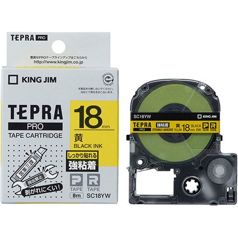 KING JIM キングジム テプラPROテープ強粘着 18mm 黄 KJ-SC18YW