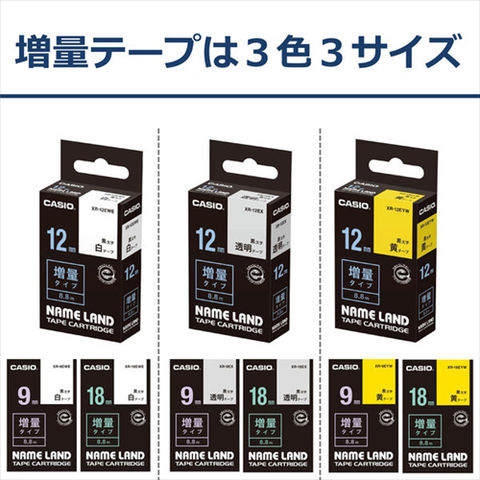 カシオ CASIO ネームランド テープ 増量版 幅9mm 白ラベル 黒文字 長尺 8.8m巻 XR-9EWE