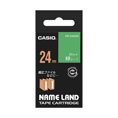 カシオ計算機 ネームランドテープ 24mm 白文字 緑 XR-24AGN