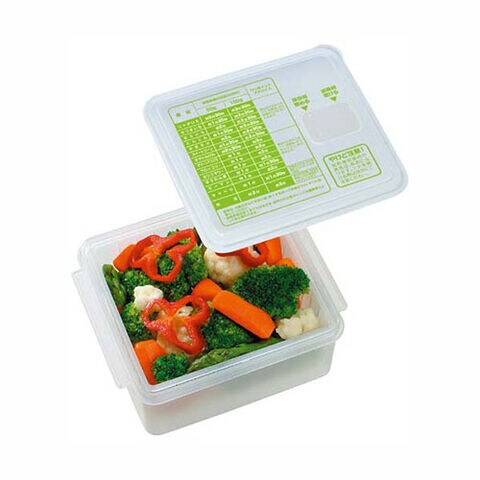 ○ザル付なので、レンジをかけたとき熱気がむらなく循環することで蒸しむらができずおいしく仕上がり、またお野菜を洗うところからあく抜き、水切り、レンジ調理、最後に冷蔵庫での保存まで1つで5役をこなします。