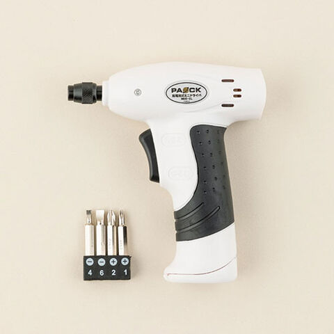 穴あけ、ねじの締めつけ、ゆるめ作業に。軽量コンパクトです。簡単切替操作で、締める、ゆるめるがワンタッチです。乾電池を使用するため、場所を気にせず、どこでも作業できます。回転速度:210min-1。締付トルク:3N・m。定格時間:5分。ドライバビットサイズ:+1・+2・-4・-6。単3乾電池4本使用(別売)。