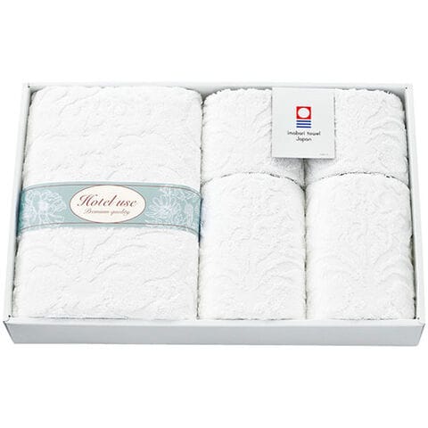 セット内容 : フェイスタオル(約34×80cm)・ウォッシュタオル(約34×34cm)×各2、バスタオル(約60×120cm)×1