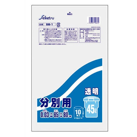 セイケツネットワーク 分別用45L 10枚入 透明 SB-001