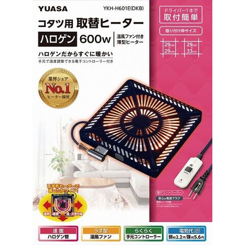 こたつヒーター こたつ用 取替ヒーター ハロゲン 600W ユアサプライムス YKH-H601E-DKB