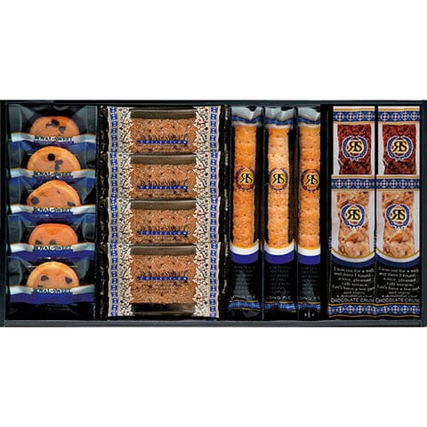 セット内容 : チョコチップクッキー×5、スクエアパイ(ショコラ)×4、ロングスティックパイ×3、チョコクランチバー(ホワイト・ミルク)×各2