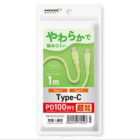 HIDISC やわらかケーブル Type-C to Type-C ピスタチオグリーン HD-STCC100W1GN