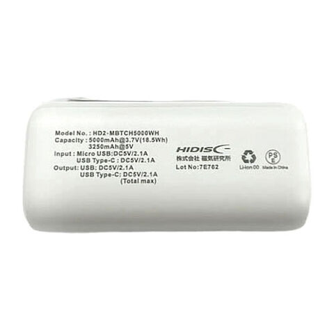 HIDISC ハーフサイズ 5000mAh モバイルバッテリー ホワイト HD2-MBTCH5000WH