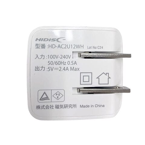 HIDISC USB充電器 12W Type-Ax2ポート スイングプラグ採用 ホワイト HD-AC2U12WH