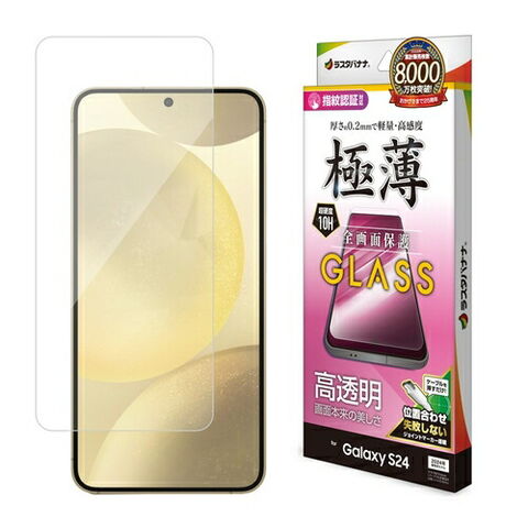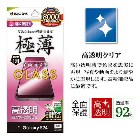 Galaxy S24用 ガラスフィルム 全面保護 高光沢 高透明 クリア 0.2mm 薄型 硬度10H 高感度 指紋認証対応 簡単貼り付け ラスタバナナ GP4159GS24