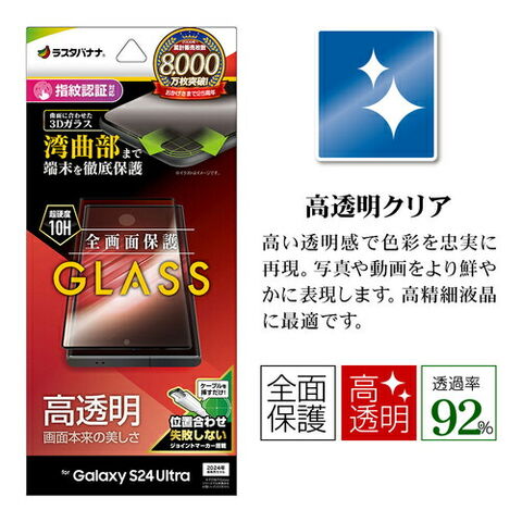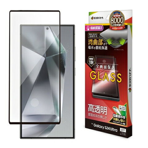 Galaxy S24 Ultra用 ガラスフィルム 全面保護 高光沢 高透明 硬度10H 指紋認証対応 簡単貼り付け ラスタバナナ 3S4168GS24U
