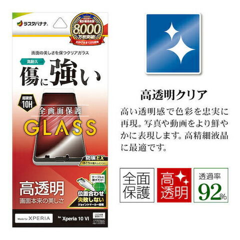 Xperia 10 VI用 ガラスフィルム 高光沢 高透明 クリア 0.33mm 硬度10H 簡単貼り付け エクスペリア ラスタバナナ GP4216XP106