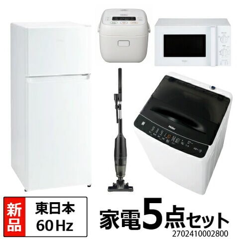 家電セット 一人暮らし 新生活 冷蔵庫 洗濯機 電子レンジ 炊飯器 掃除機 5点セット 東日本地域専用 ハイアール 2ドア冷蔵庫 120L 全自動洗濯機 洗濯4.5kg 電子レンジ 17L 50Hz 炊飯器 3合 スティッククリーナー 設置料金別途