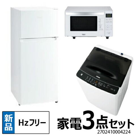 【ヘルツフリー】 家電セット 一人暮らし 新生活 冷蔵庫 洗濯機 電子レンジ 3点セット ハイアール 2ドア冷蔵庫 ホワイト色 120L 全自動洗濯機 洗濯4.5kg 電子レンジ ホワイト 17L 設置料金別途