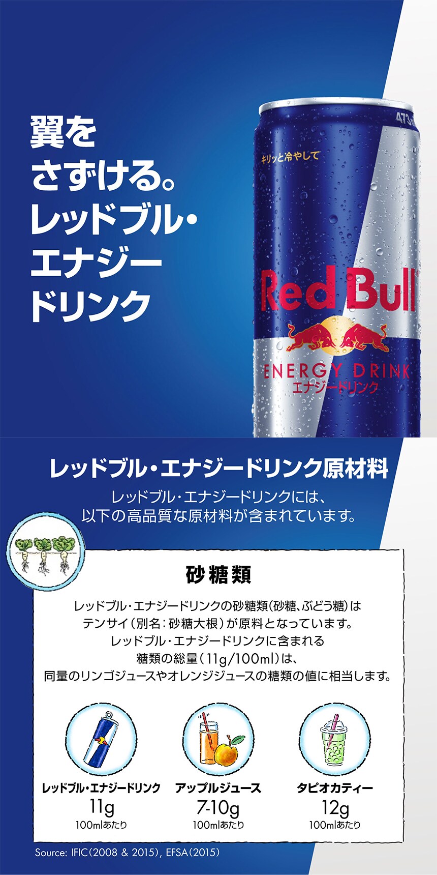 レッドブル、翼をさずける。レッドブル・エナジードリンクは、あなたが必要なときに翼をさずけます。仕事中、スポーツ中、勉強中、ゲームをしてる時や、遊ぶときにも。あなたがアクティブなライフスタイルを実現したいときの理想な相棒です。
