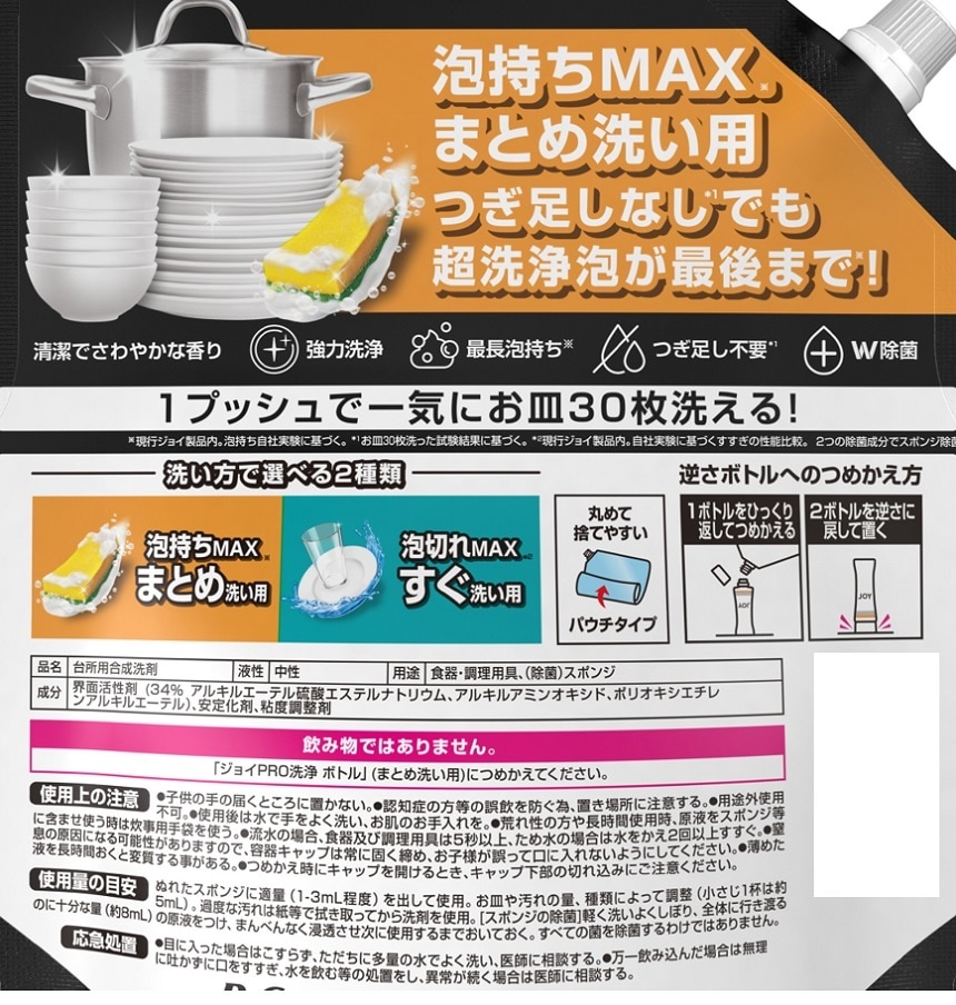 ※1…現行ジョイ製品内。泡持ち自社実験に基づく。